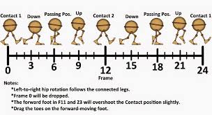 Walk cycles are made up of 4 main poses. The Contact Pose, the Passing Position Pose, the Up Pose and the Down Pose.